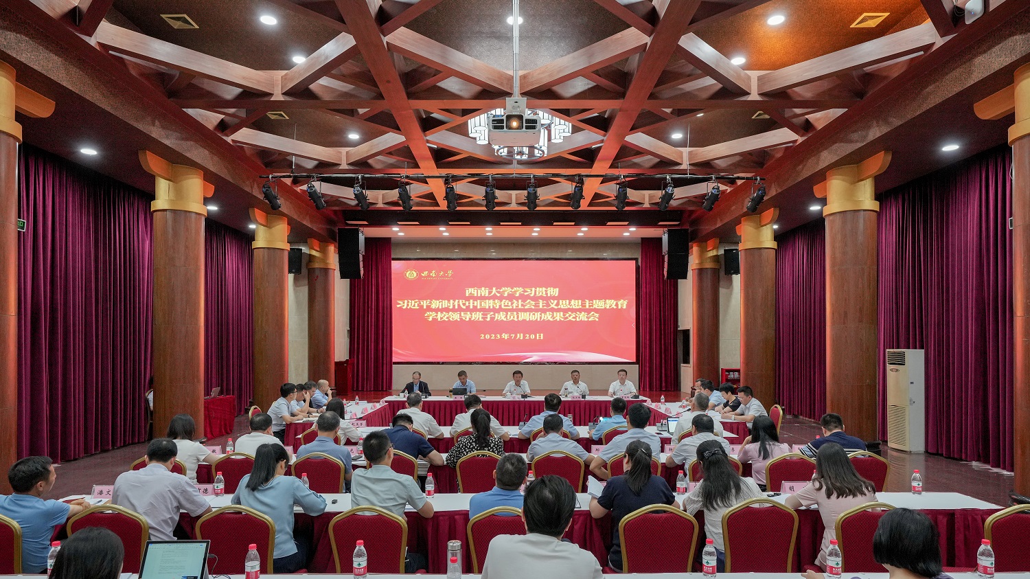 校领导分别围绕如何打造新时代“红岩先锋”变革型组织;如何强化有组织科研积极服务国家重大战略;如何进一步加强优秀年轻干部队伍建设;如何进一步强化二级学院党委、纪委“两个责任”落实落细,不断推进全面从严治党向纵深发展;如何推进校园文化建设提能增效;如何繁荣发展哲学社会科学;如何提高研究生培养质量;如何通过信息化提升学校治理能力现代化;如何更好发挥大后勤服务育人作用;如何利用绩效杠杆调动部门学院“一把手”推动学校事业发展积极性;如何进一步提升“双一流”建设质量;如何推进新时代教师教育高质量发展等主题,专题交流汇报各自专项调研的基本情况、有关经验和有益做法、存在的主要问题及改进措施和对策建议。