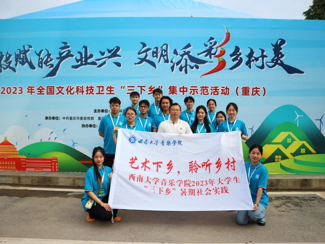7月26日,由团市委推荐,学校音乐学院“艺术下乡,聆听乡村”社会实践团参加2023年全国文化科技卫生“三下乡”集中示范活动(重庆)。