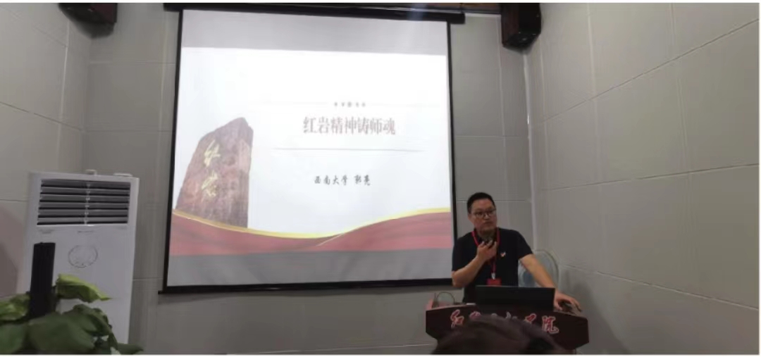 在渣滓洞监狱旧址党性专用教室中,学院党委书记郭亮为全体学员上了一节专题党课。郭亮书记深入浅出剖析出红岩精神的内涵实质,号召全体党员要用红岩精神“强师德”“铸师魂”,做一名新时代的好老师。