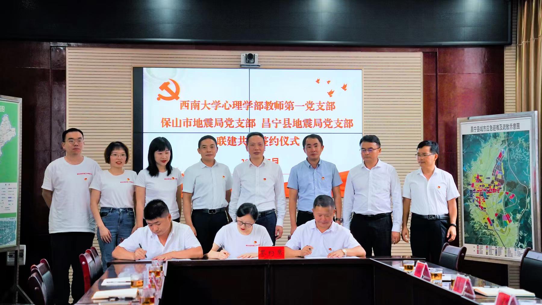 7月12日,心理学部教师第一党支部与保山市地震局党支部、昌宁县地震局党支部共同成立党建联盟,在昌宁县地震局举行联建共建签约仪式,并就合作模式、共建路径、具体抓手等方面进行了深入探讨,将积极探索推进“组织联建、活动联办、经验联学、服务联抓”的心理学部党建“四联”昌宁模式,高标准推进党建共同体建设。