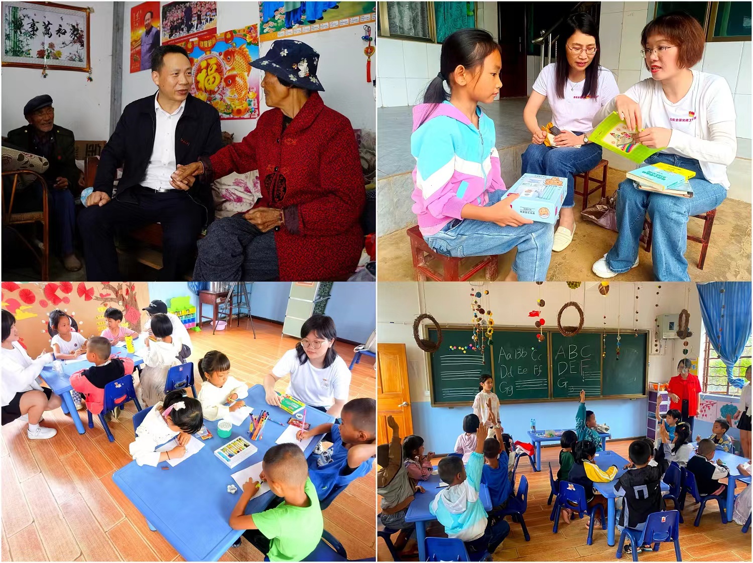 7月11日至14日,团队去到鸡飞镇二母龙村、田园镇新城社区40余户家庭,走访慰问留守儿童与困难老人,在二母龙村为20余名留守儿童开展心理团辅活动。心理学部教师第一党支部在二母龙村捐建“初心”书屋,并向留守儿童和老人赠送了文具、图书、生活用品等物资。团队特邀茶学专家、食品科学学院孙康老师为当地提供茶叶产业产销市场拓展与技术支持。