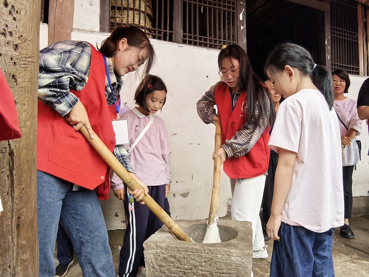 活动中,学生们以民为师,向村民们学习打糍粑、磨豆花等传统技艺,并进行农事体验、学习农耕知识。“院子里大多都是老年人,这样的活动多来搞搞,我们这里热闹些。”村民们说。