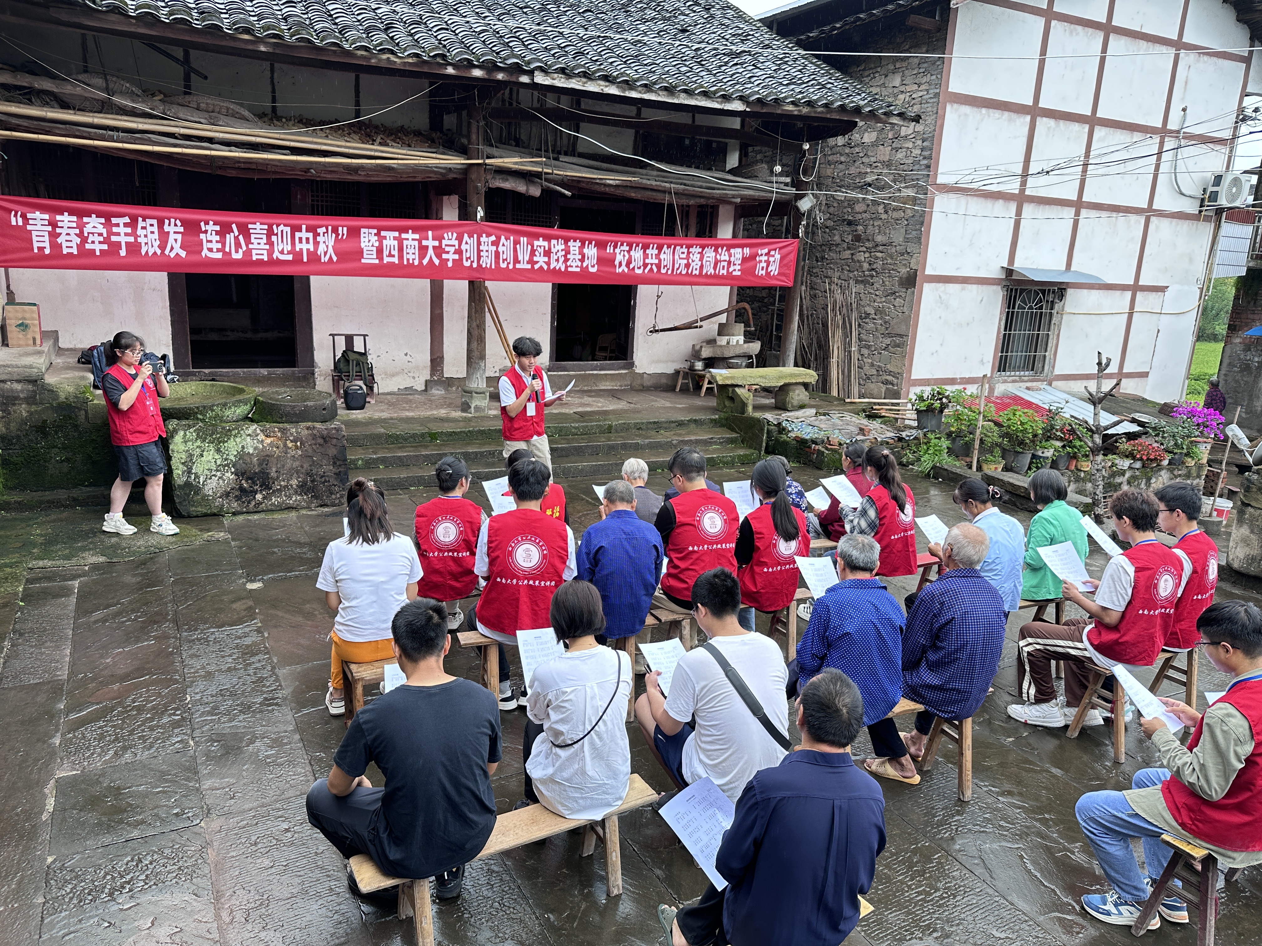 9月24日,学生公共政策宣讲团走进柳荫镇西河村,与该村联合开展“青春牵手银发 连心喜迎中秋 校地共创院落微治理”活动,以乡村治理“双向奔赴”推进乡村振兴。