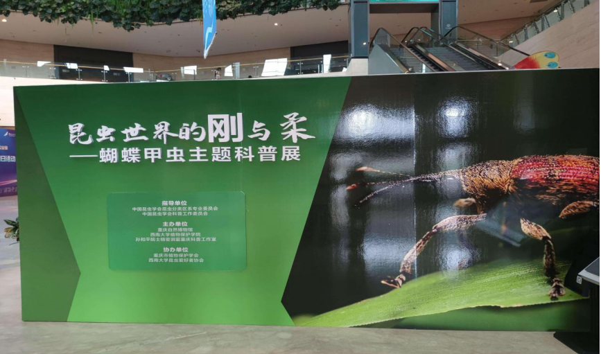 春去秋来又华诞,明月如盘悬中天。在这月满人和,家国团圆的中秋、国庆双节假期期间,为了更好的普及昆虫学知识,让大家了解昆虫文化。由中国昆虫学会昆虫分类区系专业委员会,中国昆虫协会科普工作委员会指导;重庆自然博物馆、taptap点点官方网站植物保护学院、孙和平院士精密测量重庆科普工作室主办;重庆市植物保护学会,taptap点点官方网站昆虫爱好者协会协办的昆虫科普活动《昆虫世界的刚与柔——蝴蝶甲虫主题科普展》在重庆自然博物馆一楼大厅顺利举办。