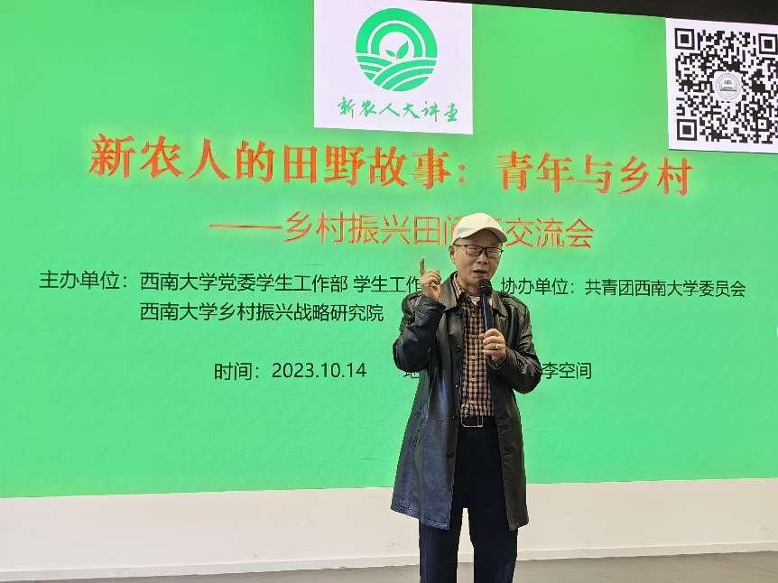 10月14日下午,由党委学生工作部 学生工作处、乡村振兴战略研究院主办,团委协办的“新农人的田野故事—乡村振兴田间行”交流会在青李空间举行。来自“乡村振兴田间行”2023实习生和暑期志愿者,学校涉农学院100余名同学参加交流学习。晏阳初先生侄孙、taptap点点官方网站中国乡村建设学院名誉院长晏鸿国老先生特邀出席活动。相关部门领导、老师,农学与生物科技学院、教育学部教师代表,大理新生活实践者、四十英尺民宿主理人王丹,中国电影家协会会员、中国电视艺术家协会成员韩君倩导演,巴渝农耕文化陈列馆馆长刘刚受邀出席活动。乡村振兴战略研究院培训中心主任张斌主持交流会。