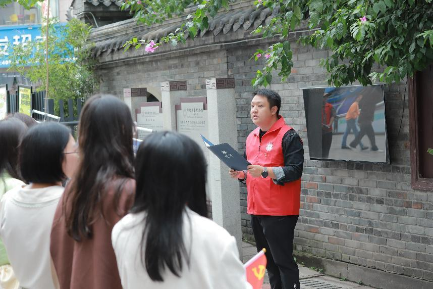 教师党员在途经点为同学们介绍长征历史故事和北碚红色文化