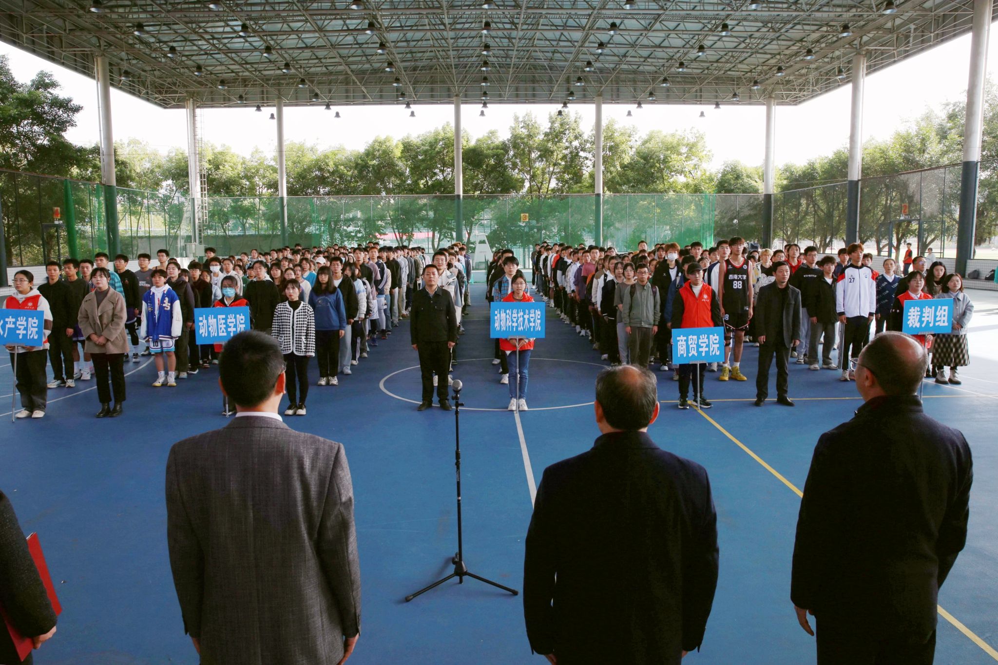 开幕式上,穆奎代表校区党工委、管委会致辞,表示本届“团建杯”球类联赛的召开是荣昌校区在学校“一体化”建设发展要求的基础上,加强特色文体品牌建设和增强文体活动育人效能的重要举措;希望全体运动员尊重对手、尊重裁判,既要顽强拼搏、赛出水平,更要赛出风格、赛出友谊;希望全体同学积极参加,深刻感悟体教融合的内涵,并将运动场上锲而不舍的奋斗精神延续到今后的学习和工作中去。随后,裁判员代表刘凝宇同学与运动员代表王磊同学分别宣誓。荣昌校区党工委书记周国安宣布本届球类联赛开幕。