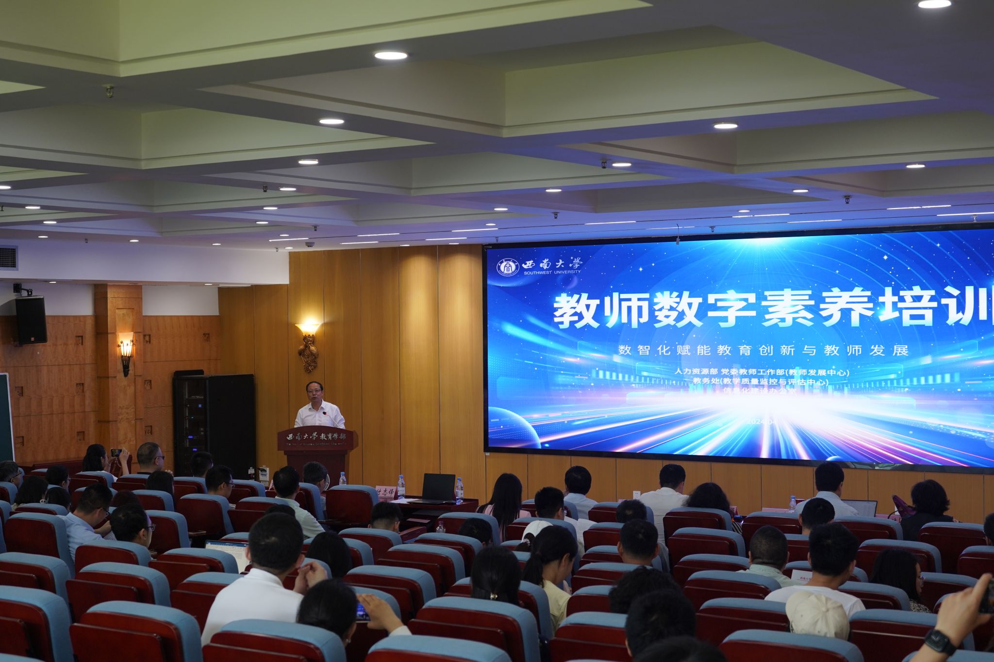 为持续推进教师数字素养能力提升,4月19日下午,学校举行教师数字素养第二场专题培训暨数字化骨干教师开班典礼。副校长周光明出席活动并讲话,相关部门、学院(部)负责人、教师代表和数字化骨干教师参加培训会。培训会由人力资源部部长邹芙都主持。