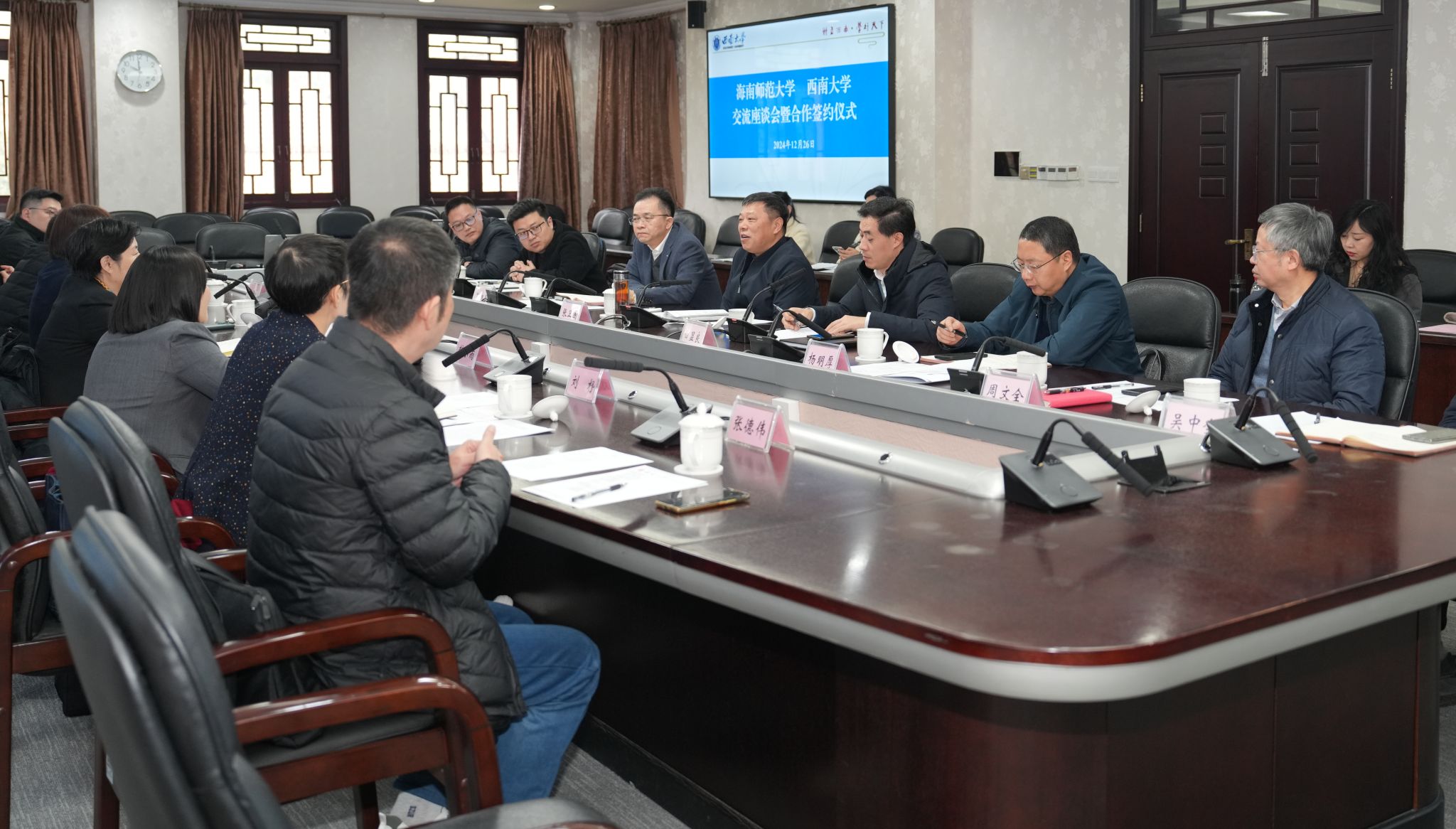 12月26日上午,学校与海南师范大学交流座谈会暨合作签约仪式举行。taptap点点官方网站党委书记张卫国,副校长白显良;海南师范大学党委书记许玫,副校长韩小雨、王瑜出席会议。会议由白显良主持。会上,两校签署合作协议,学校马克思主义学院、教育学部分别与海南师范大学马克思主义学院、教育学院签订院际合作备忘录。