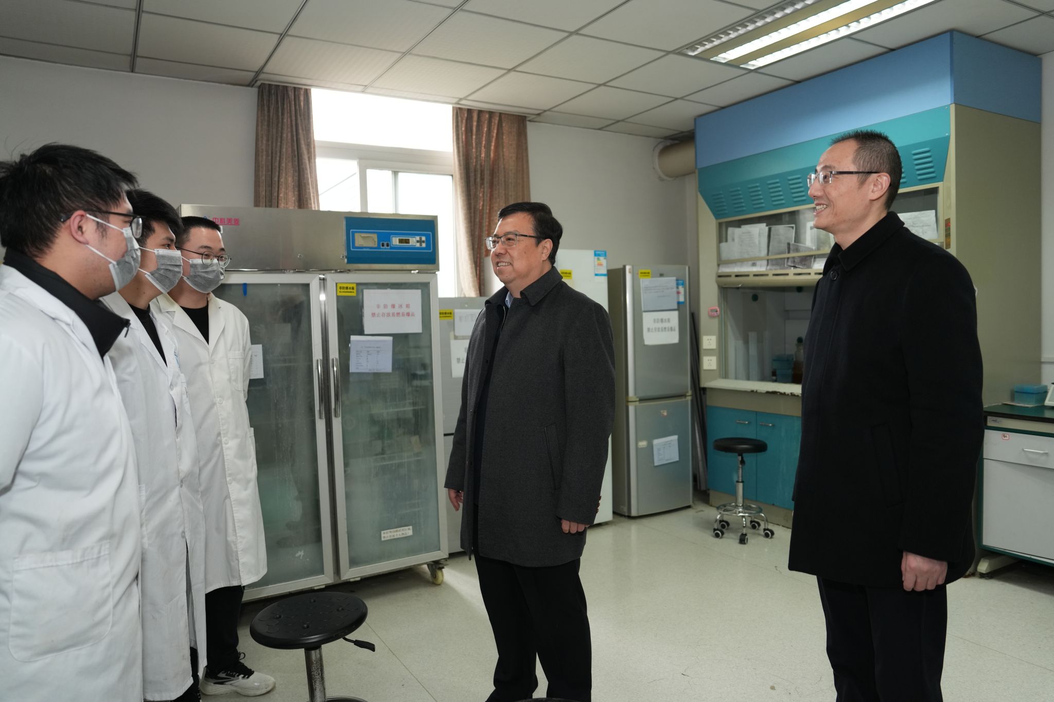 1月26日上午,校长王进军率队走访慰问了2025年春节留校学生。王进军一行来到生命科学学院水产所实验室和青竹空间,为留校学生代表送去新春问候和暖心礼包,询问关心大家留校期间的学习生活情况。