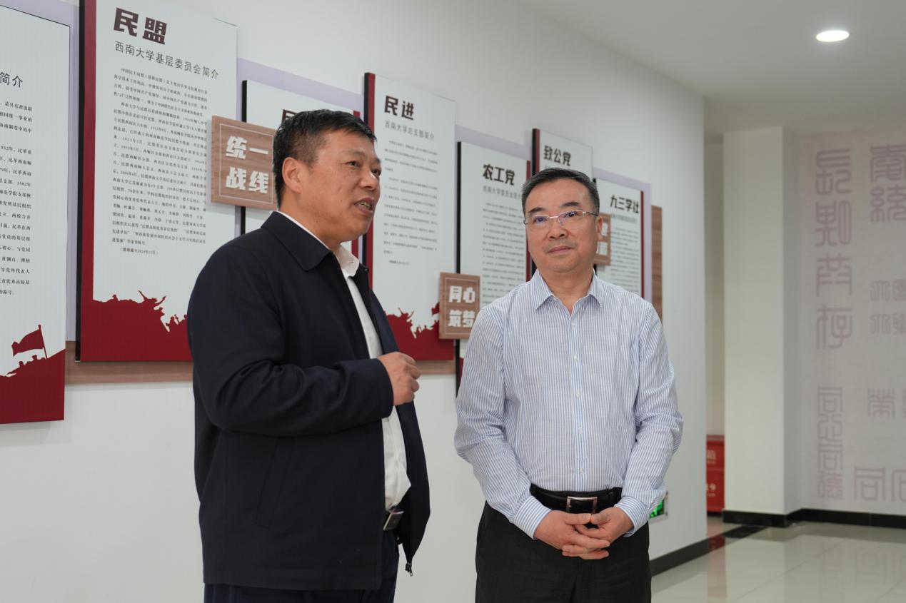 在“党外人士之家”同心楼,商奎实地查看学校基层统战阵地建设情况,与民主党派基层组织负责人深入交流,关心他们的工作及条件保障情况。