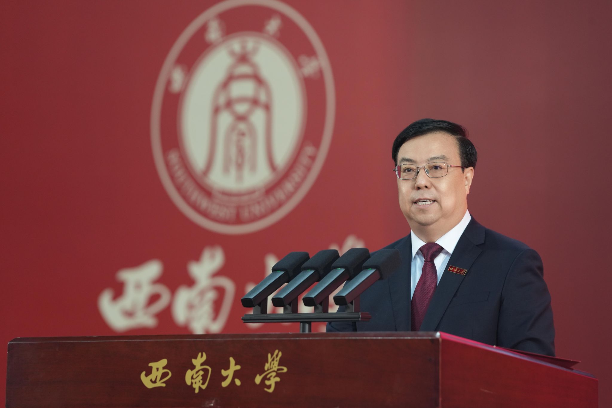 校长王进军向全体2025级本科生寄语。他鼓励同学们要以家国大义校准青春航向,与国家同呼吸、与民族共命运;以传统文化涵养责任担当,立德进学,心怀感恩,堪当大任;以拼搏实干书写青春华章,让奋斗之光与西大的百年星火交相辉映,为百年西大注入激荡的青春力量。